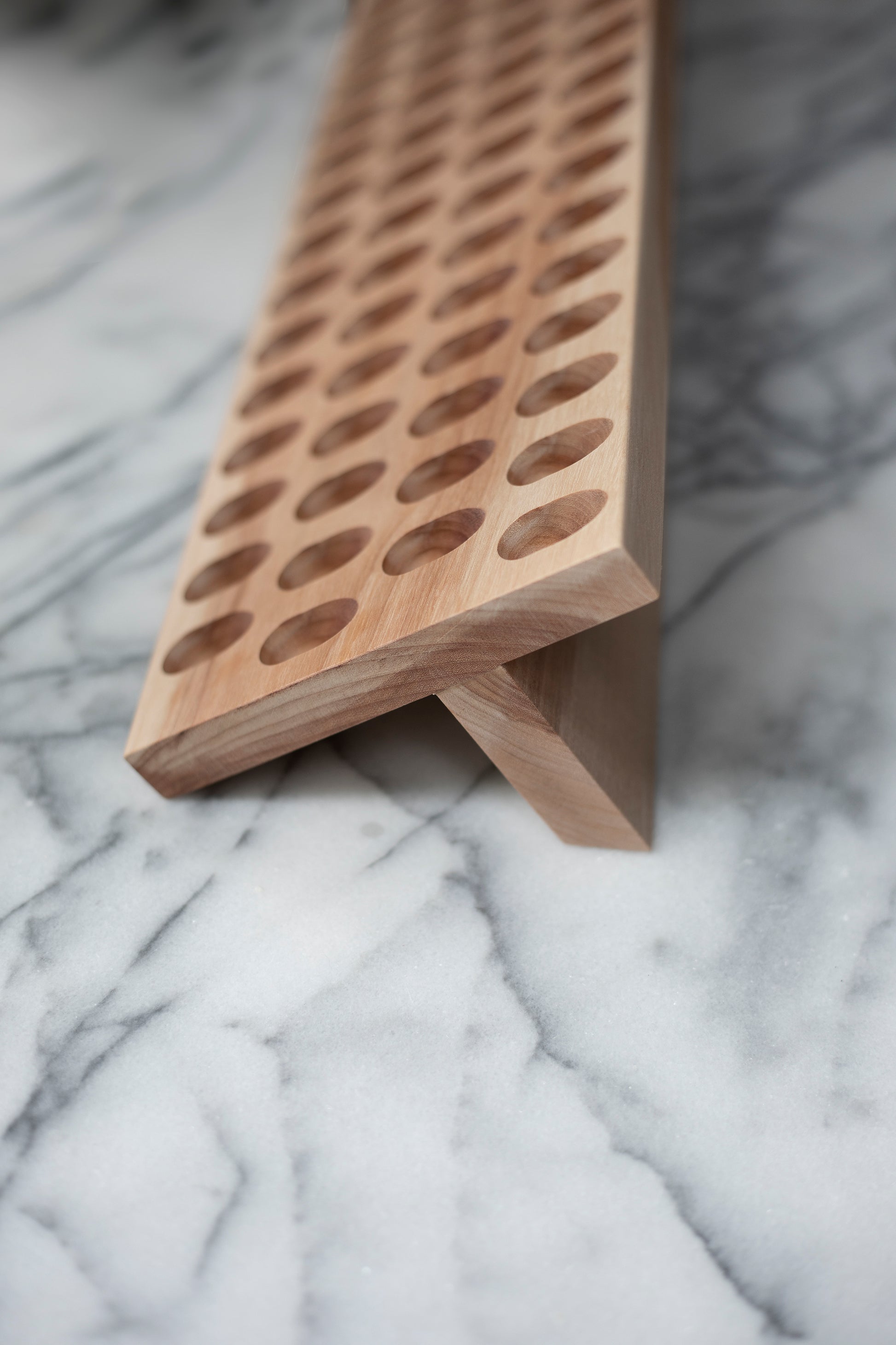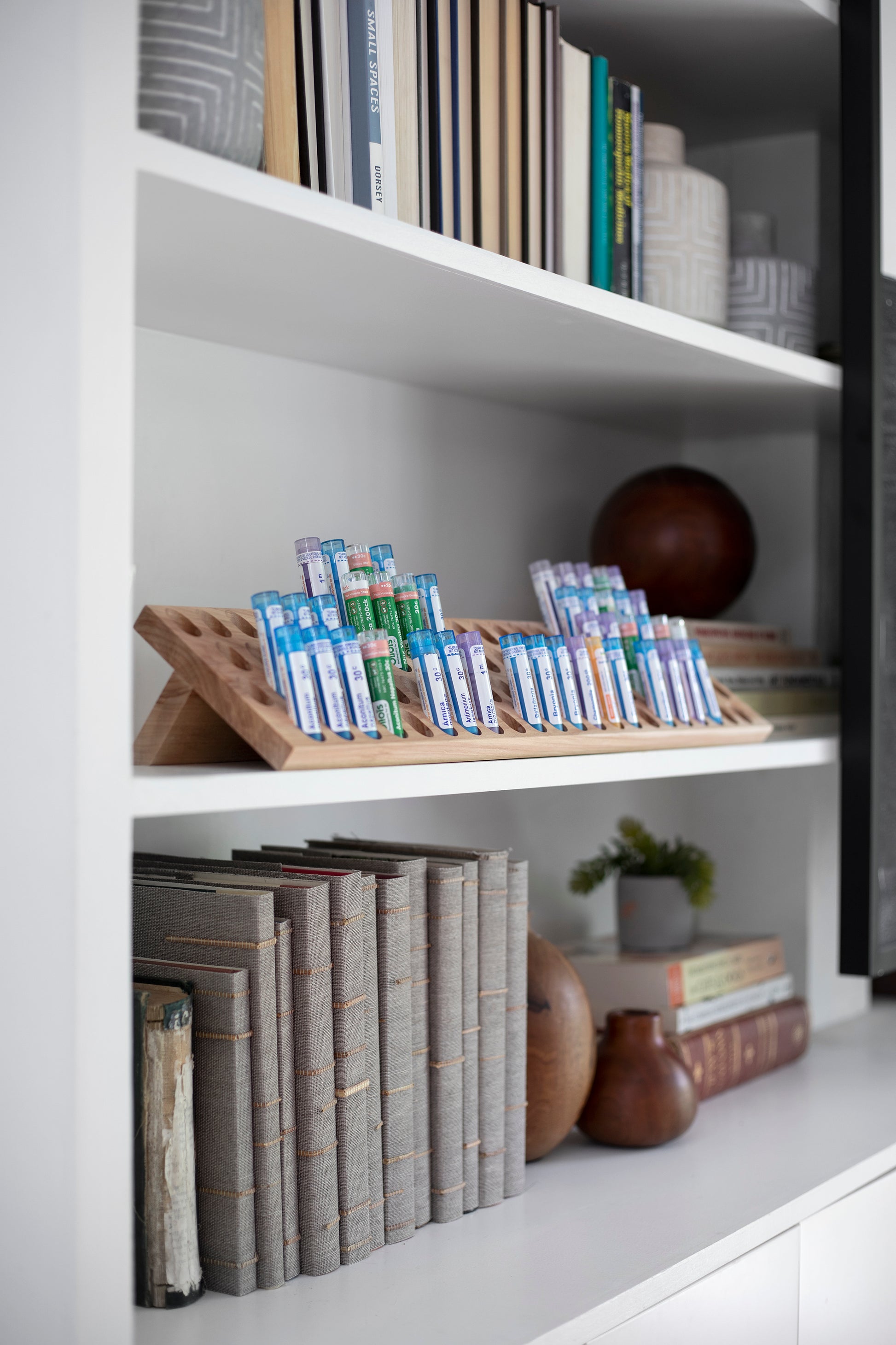 Solid birch unfinished wood homeopathy storage rack. To sit on countertop, shelf, or any flat surface. This installation is freestanding and no hanging is required.